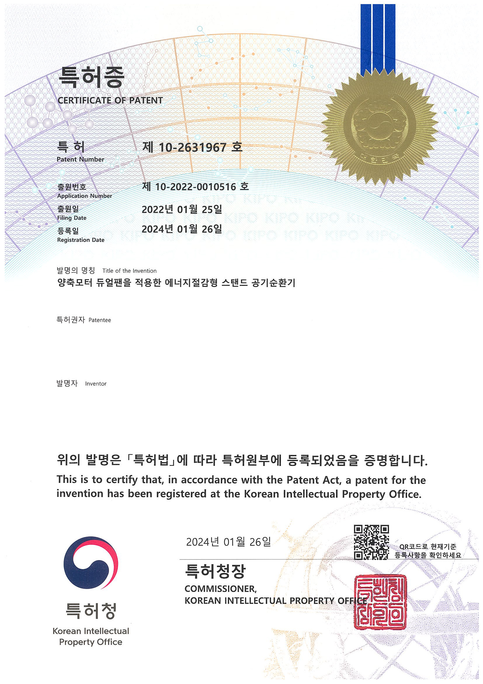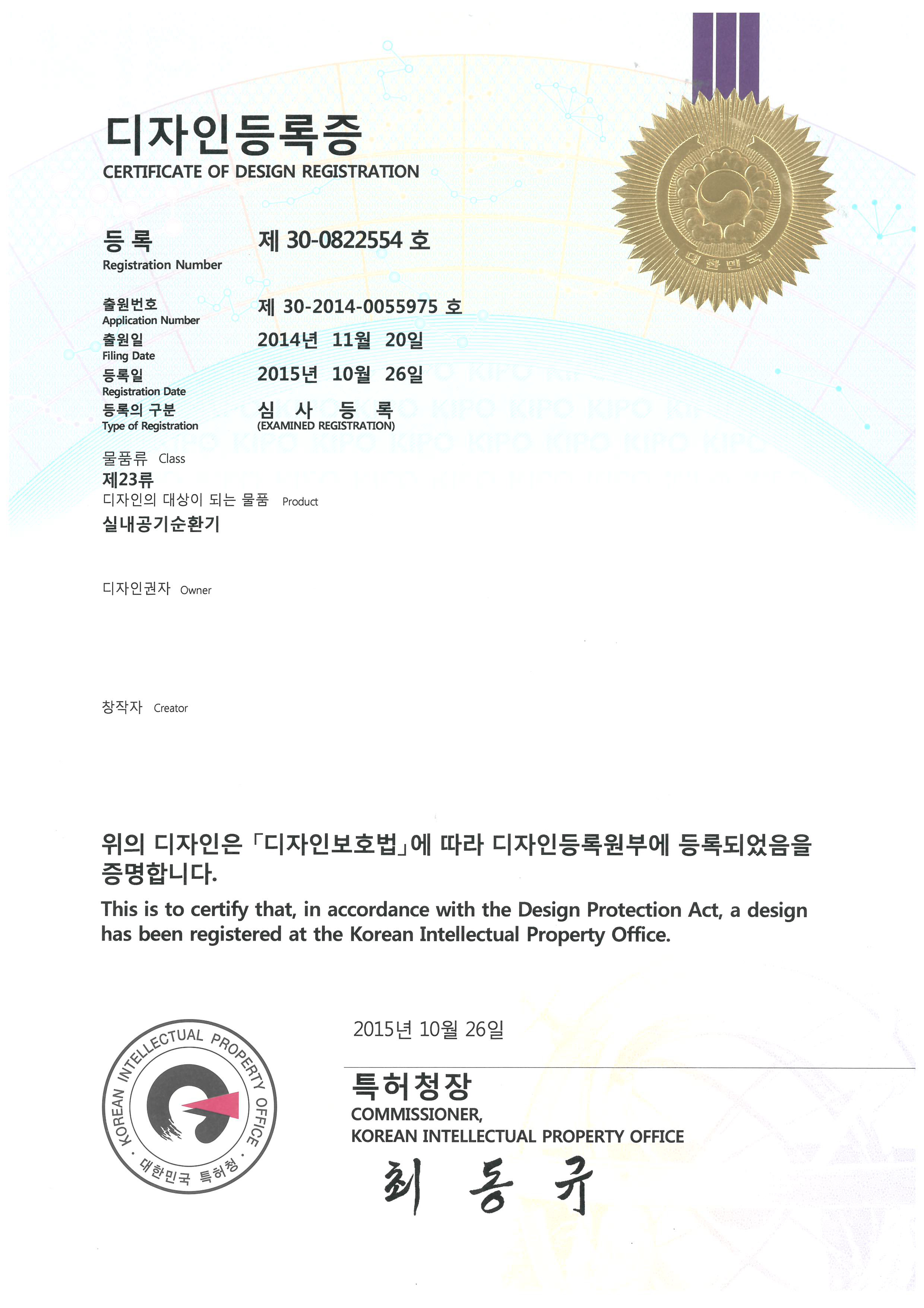 인증 받았으며, 공기순환기를