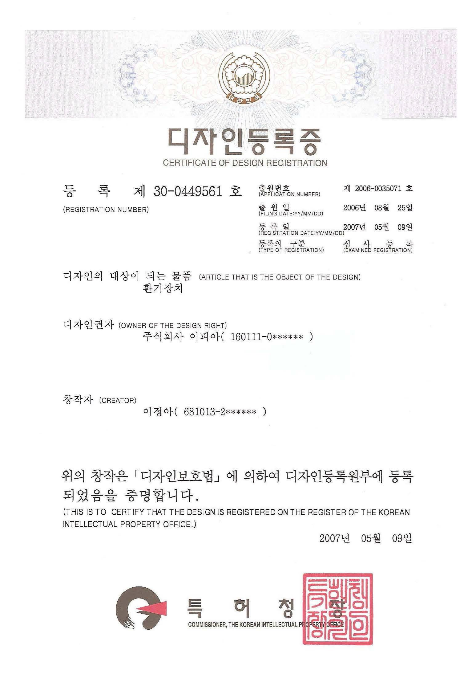 여러 특허를 등록하여 안전한 제품임을